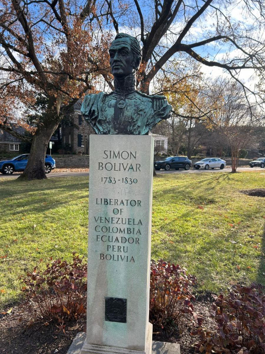 The statue is of Simón Bolívar and was a gift from the Venezuelan government to the City of Baltimore in 1961. Due to its availability of parkland, the statue was sited in our welcoming community. The statue’s sculptor, Felix de Weldon, also created the famed Iwo Jima Memorial in Arlington, VA. Two years ago, CBS Baltimore produced a news segment on the statue, which may be viewed at https://www.cbsnews.com/baltimore/news/wheres-marty-simon-bolivar-statue/